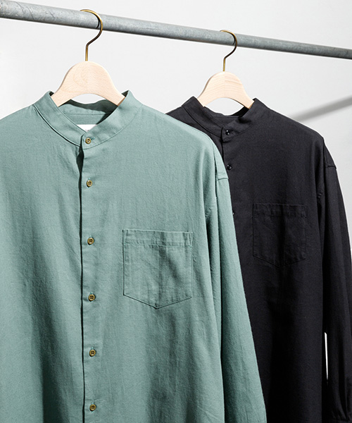 Band Collar Cotton Wool Shirt