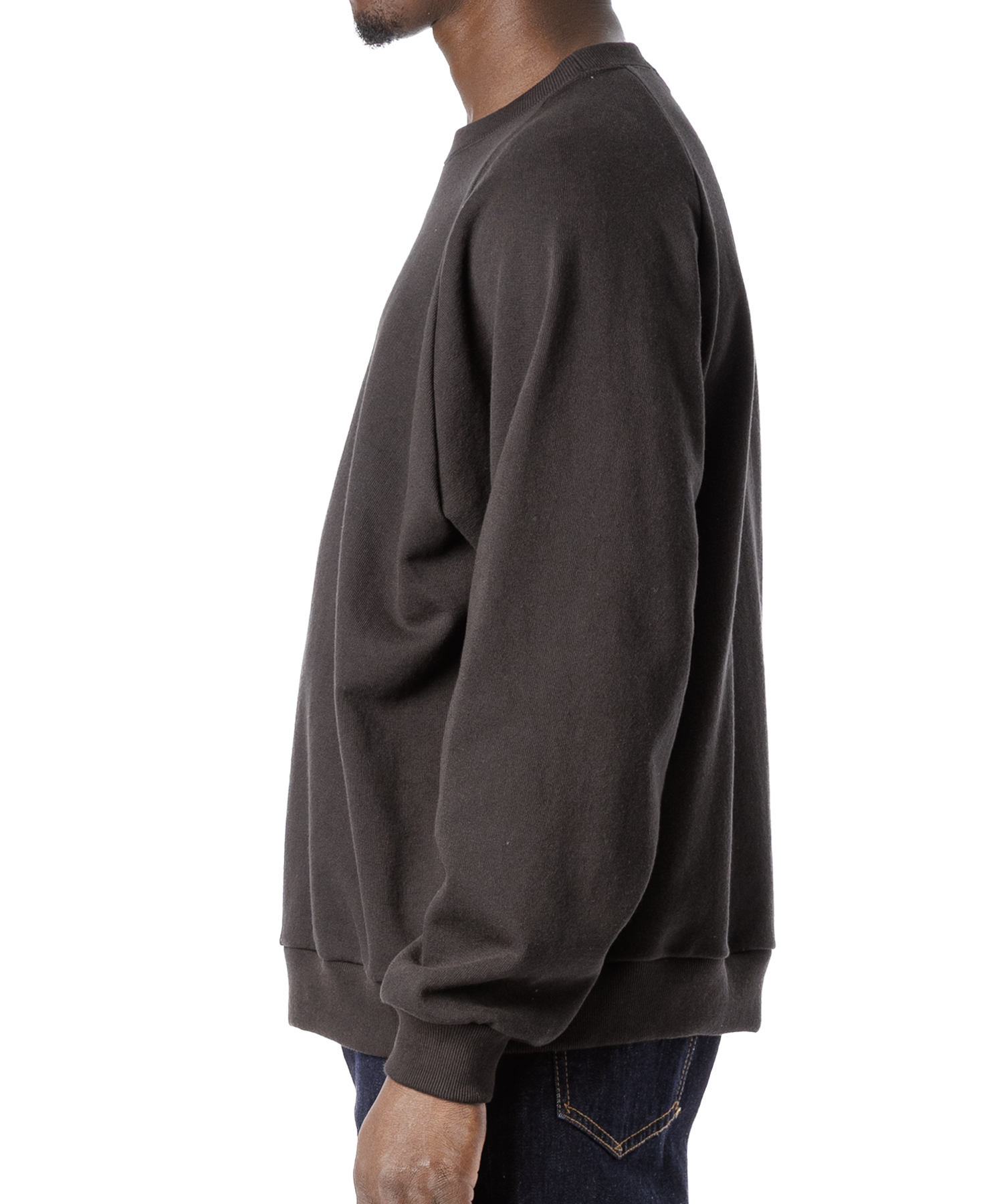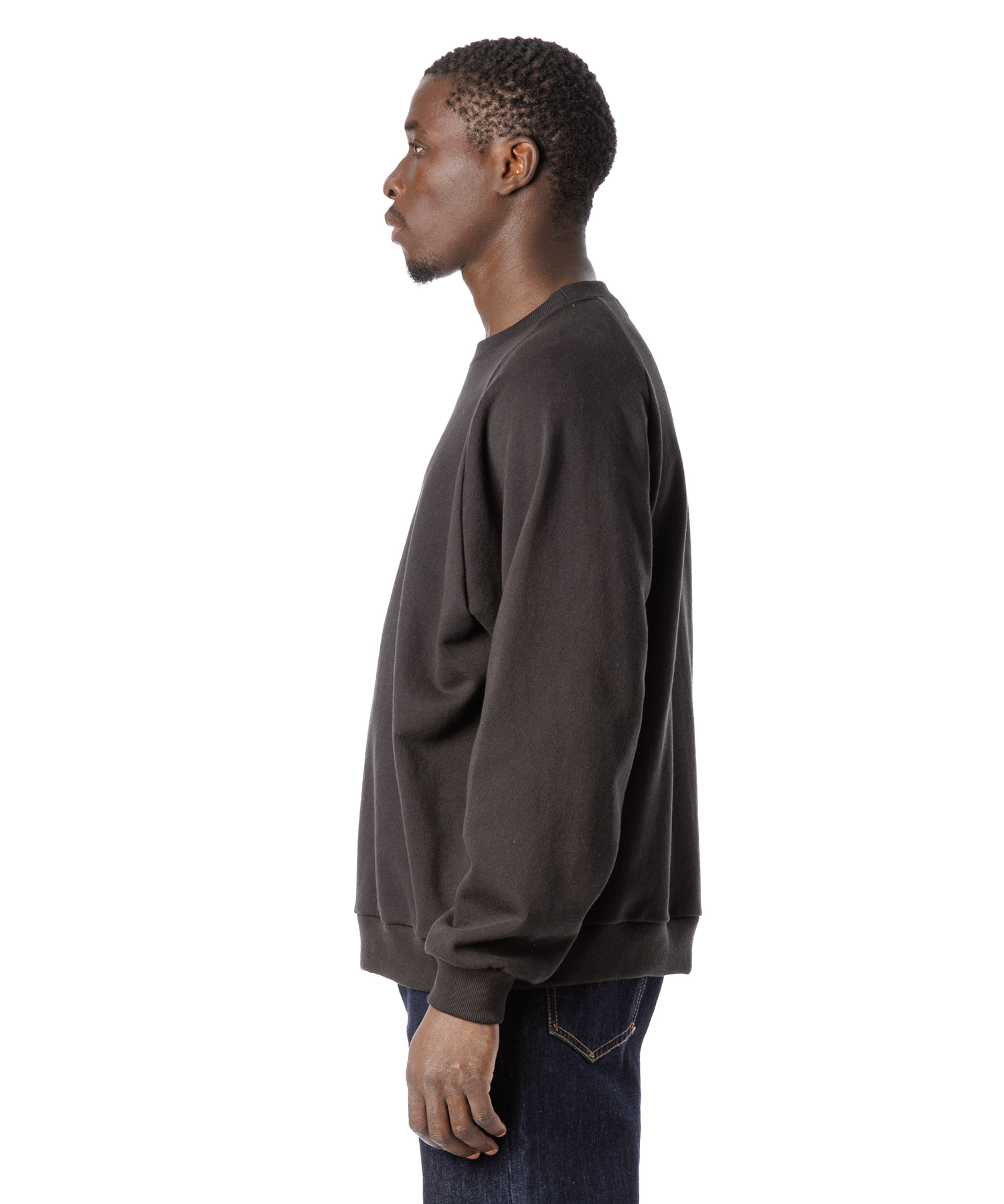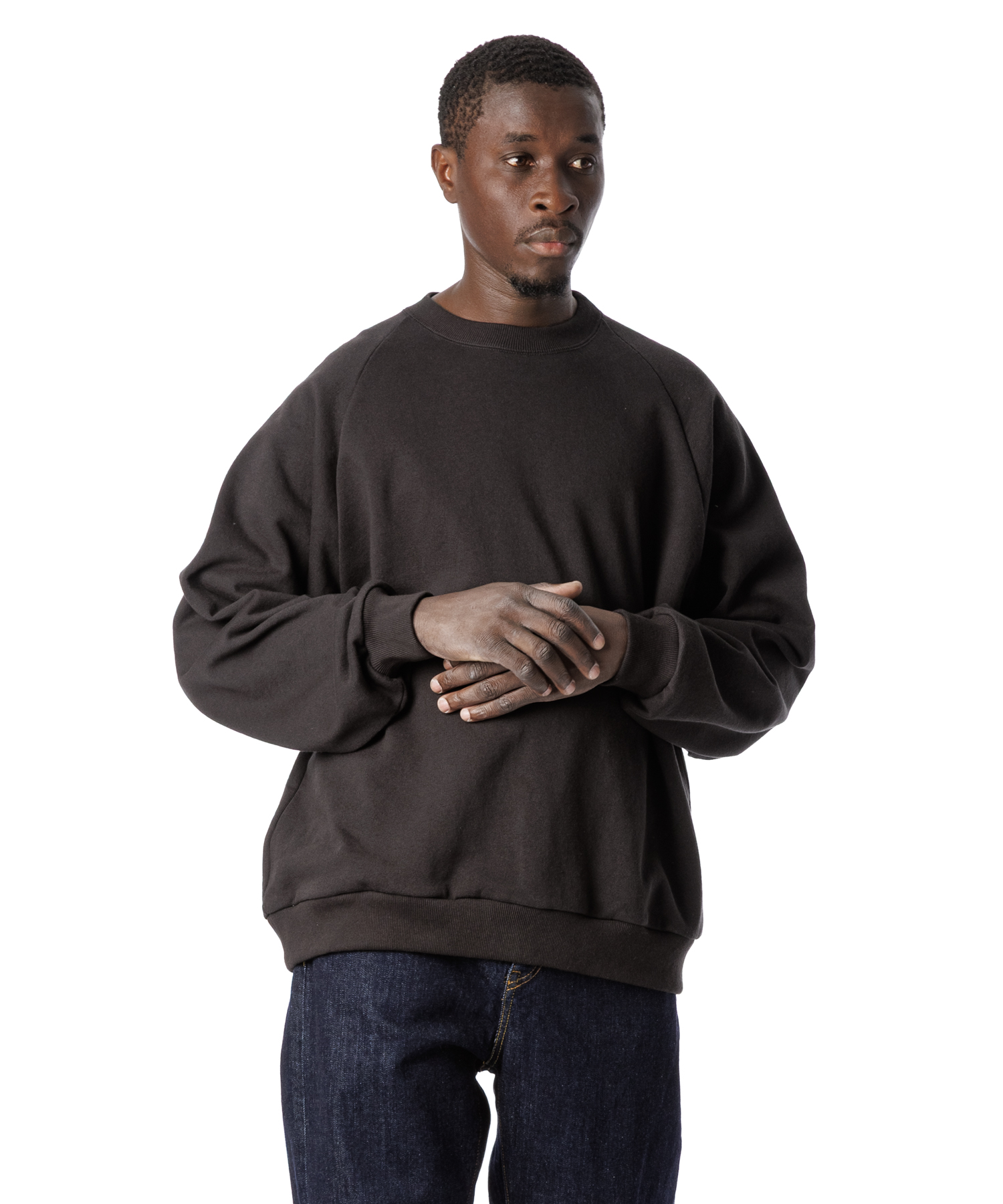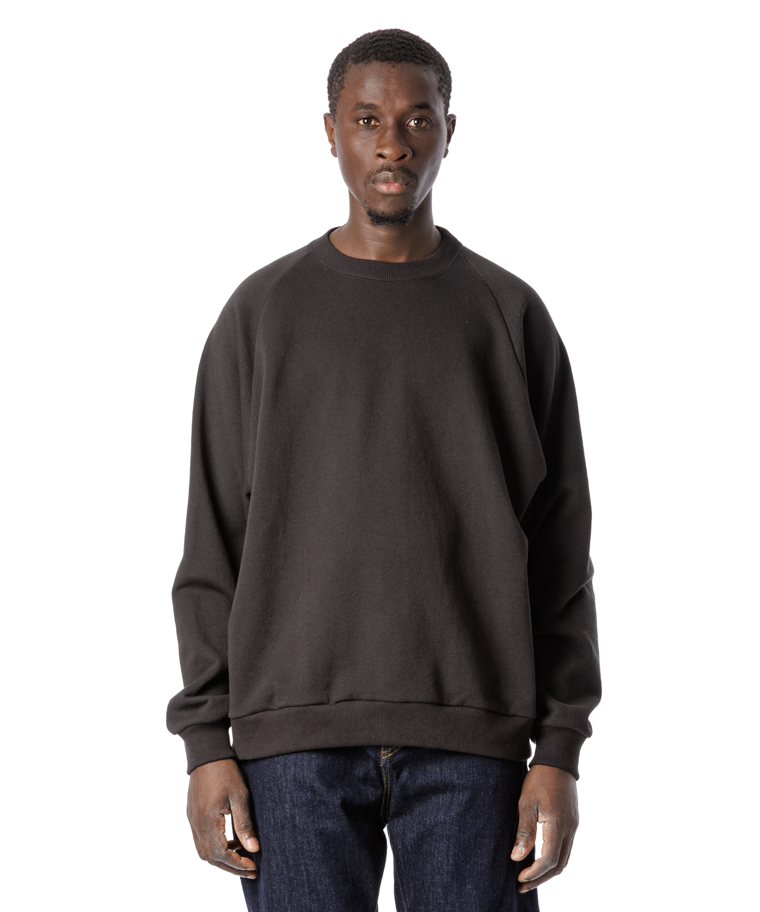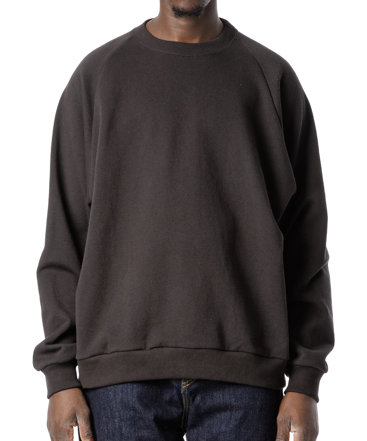 ドライタッチ(シャリ感)な風合いのアメリカコットン裏毛を使用した、シンプルなラグラン仕様のトレーナーです。