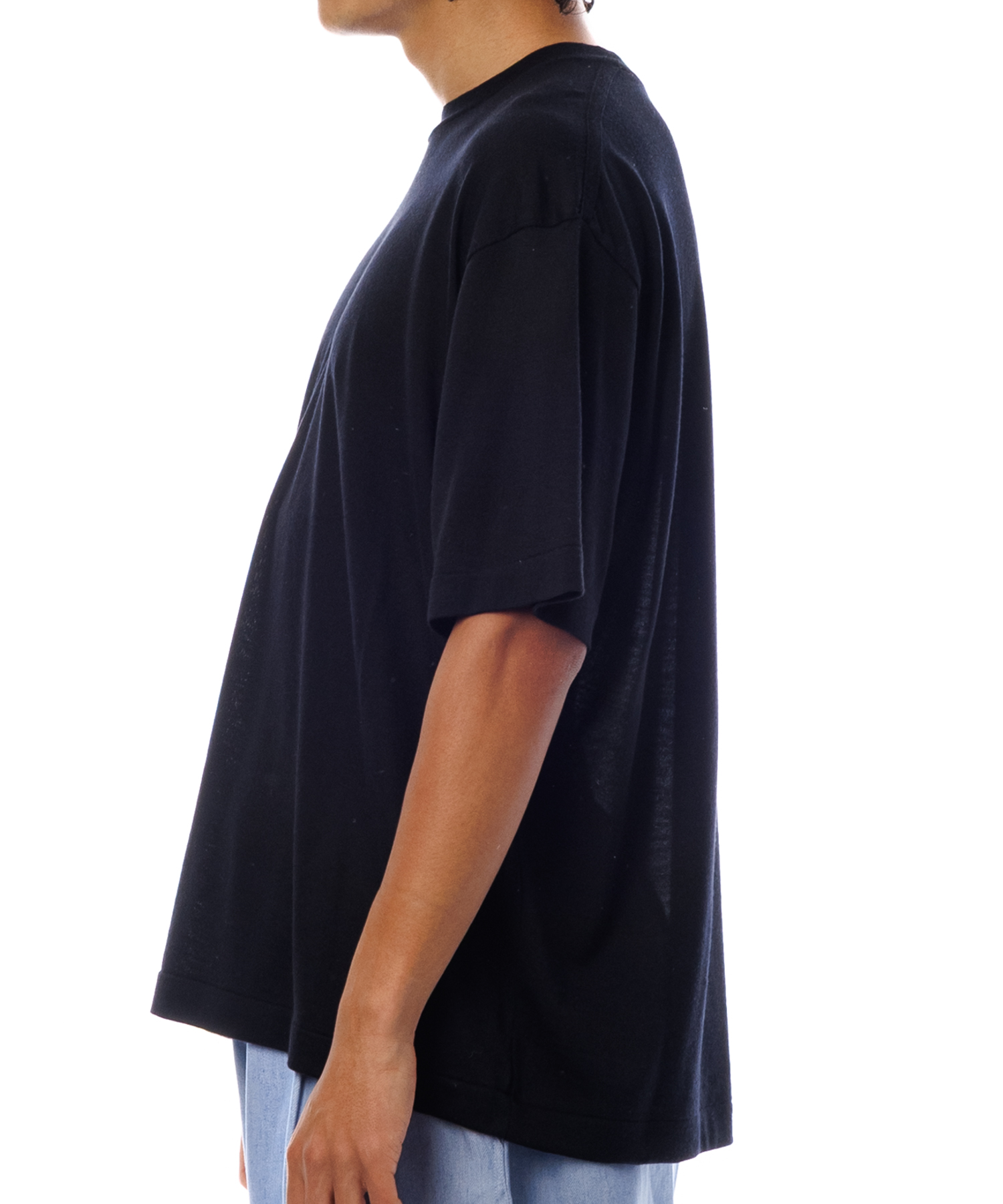 上質なニュージーランドのMt.Breath Wool(メリノウール)を使用した、春夏に重宝するTシャツです。生地の特徴は極細繊維の為、ソフトな肌触りで優れた吸湿性と、天然の抗菌防臭効果があります。また夏のシーズンに対応する温度調整機能をも併せ持つ素材です。デザインの特徴は裾のみリブ仕様で、表肩線に敢えてタコバインダー始末を施してます。