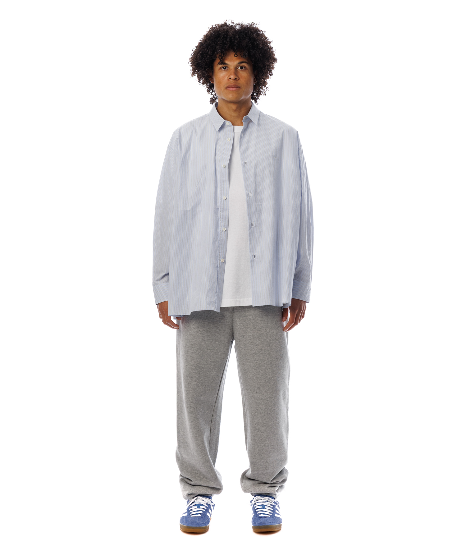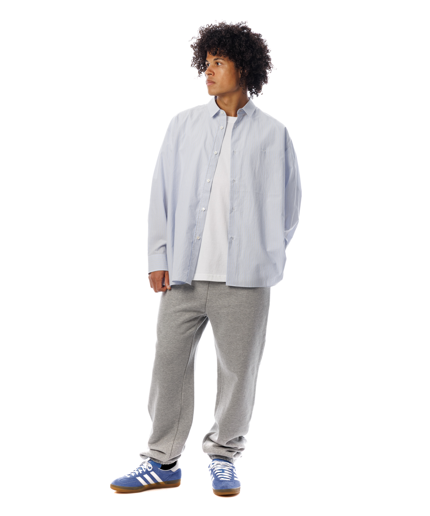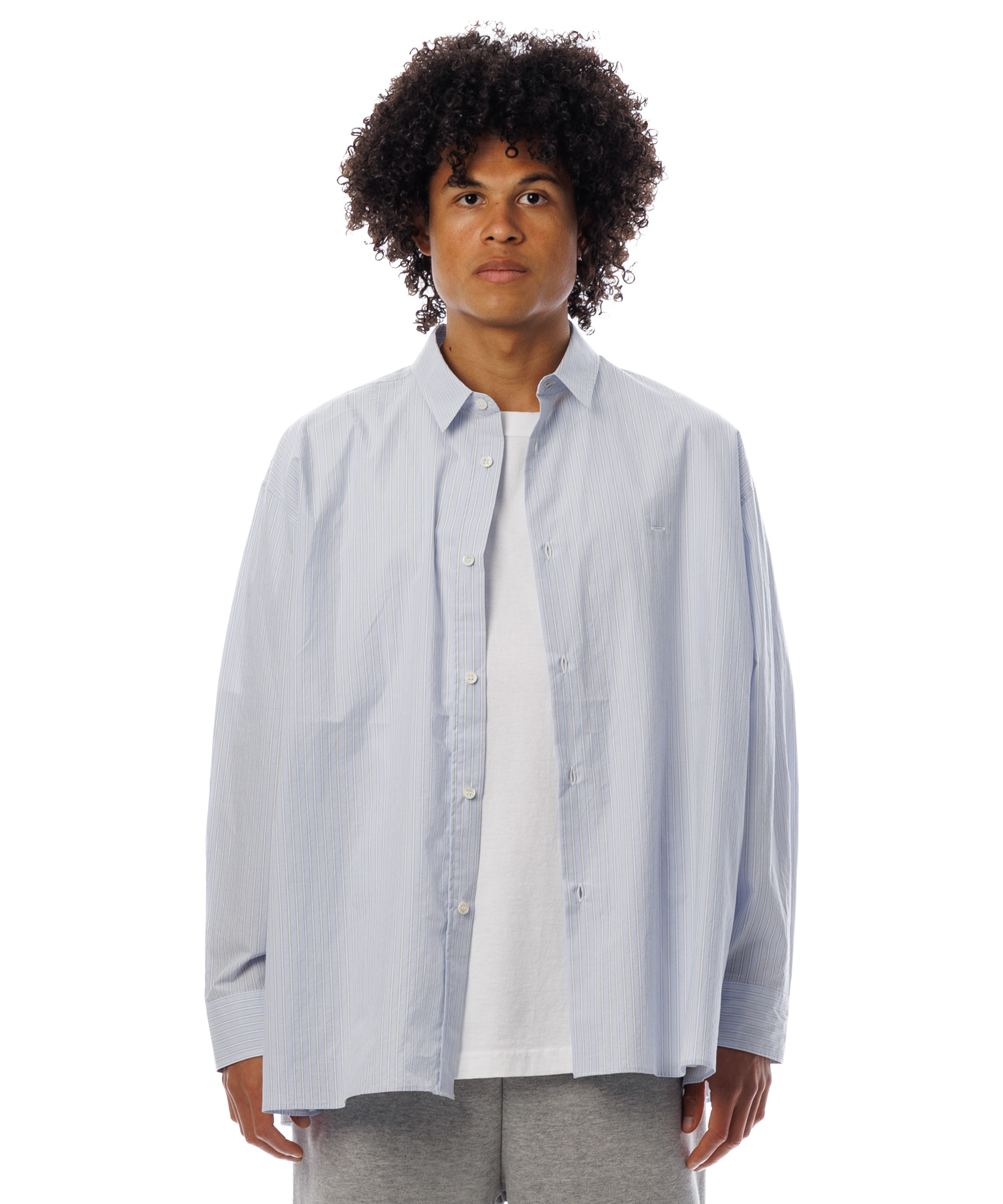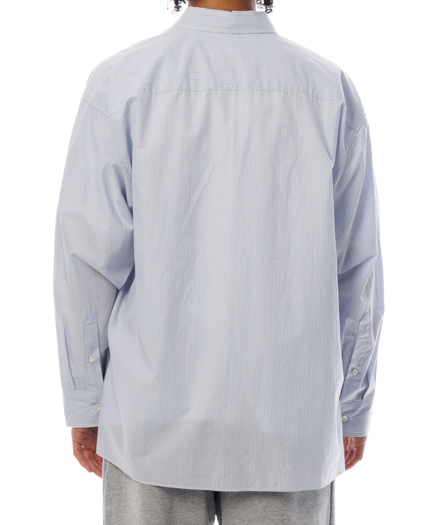 80/1超長綿を使用した、胸にグラスホール付きリゾートストライプシャツです。シルエットは通常のシャツより大きめになります。生地の特徴は特殊柔軟を用いて滑らかさと反発感を追求し、洗い加工を施している為、上質な肌触り感があり着心地は抜群です。