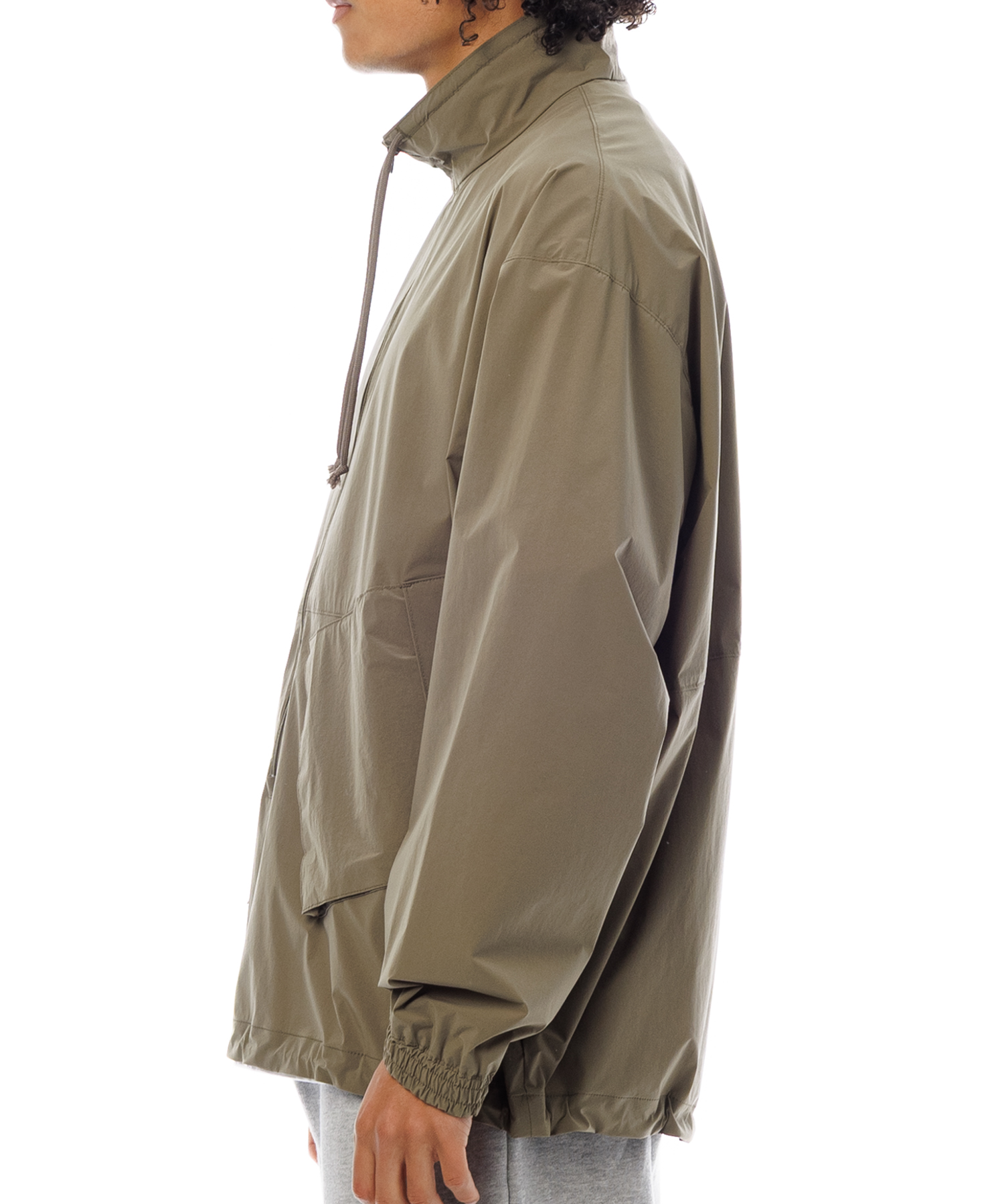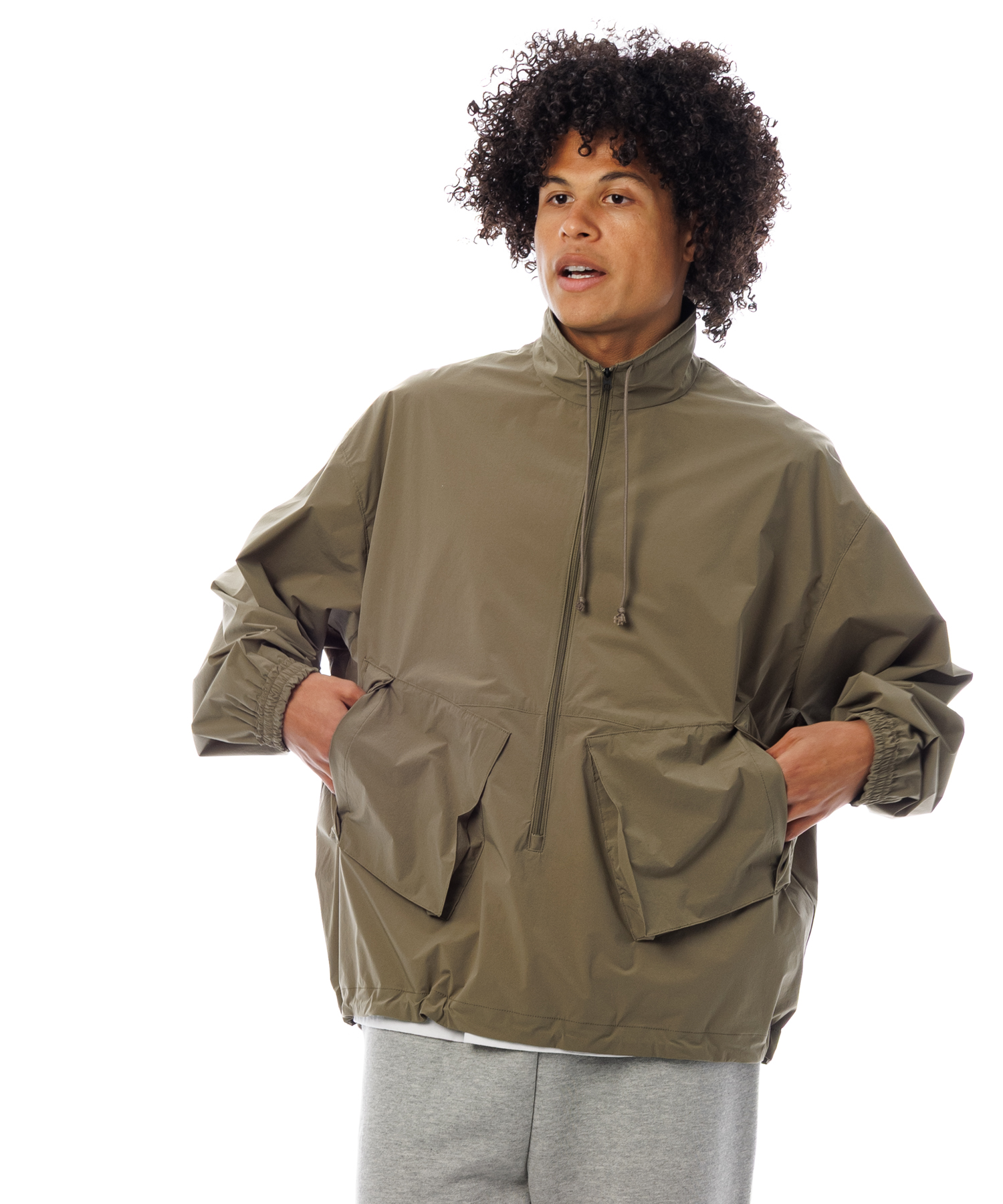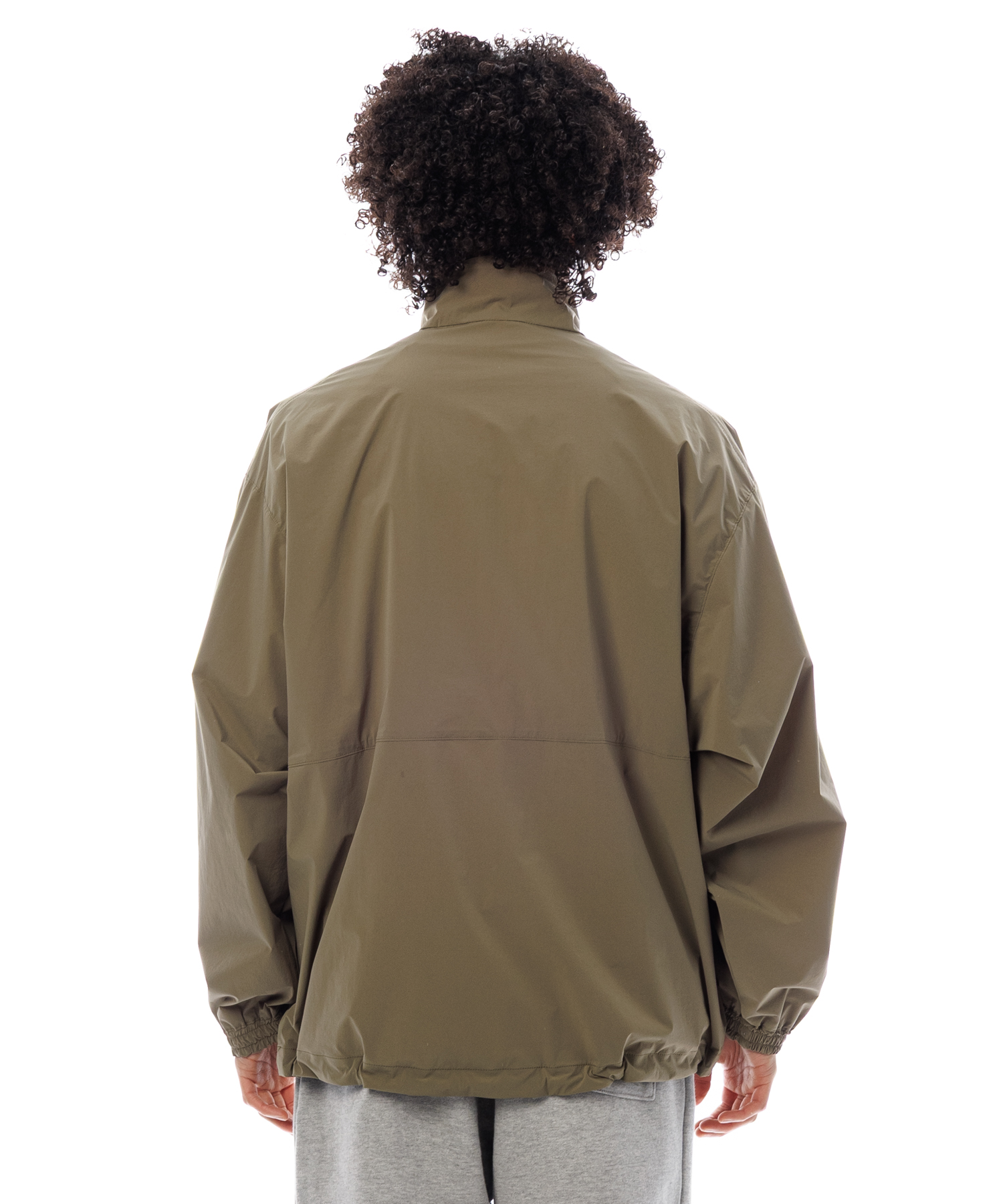 伸縮性 (4Way)に優れた薄手タフタ生地を使用した、アノラックジャケットです。生地の特徴は伸縮性に優れ、紙のような軽量感とハリ感があり、ナイロン特有ドライタッチとマット感あるのが特徴です。また撥水加工を施してますので、タウンユースからアクティブまで、シーンレスで着用いただけます。裾にはゴム紐が通ってますので、シーンに合わせて絞れます。